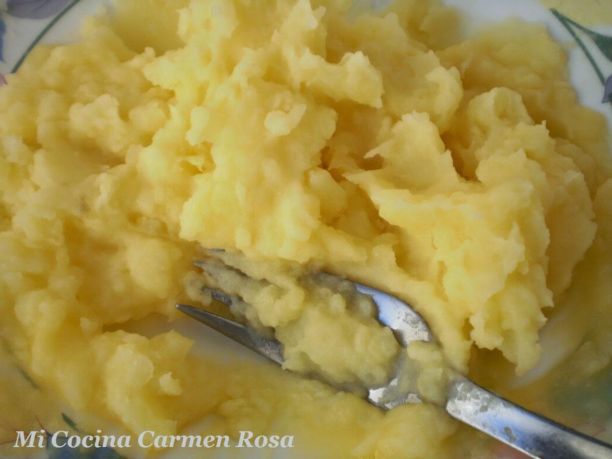 Preparar también el puré por separado. A ambos añadirles dos cucharadas soperas de leche, una o dos de mantequilla, pimienta negra recién molida?.y machacar con un tenedor. Reservar por un lado el puré de patatas