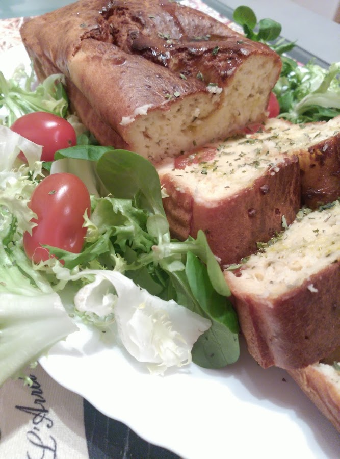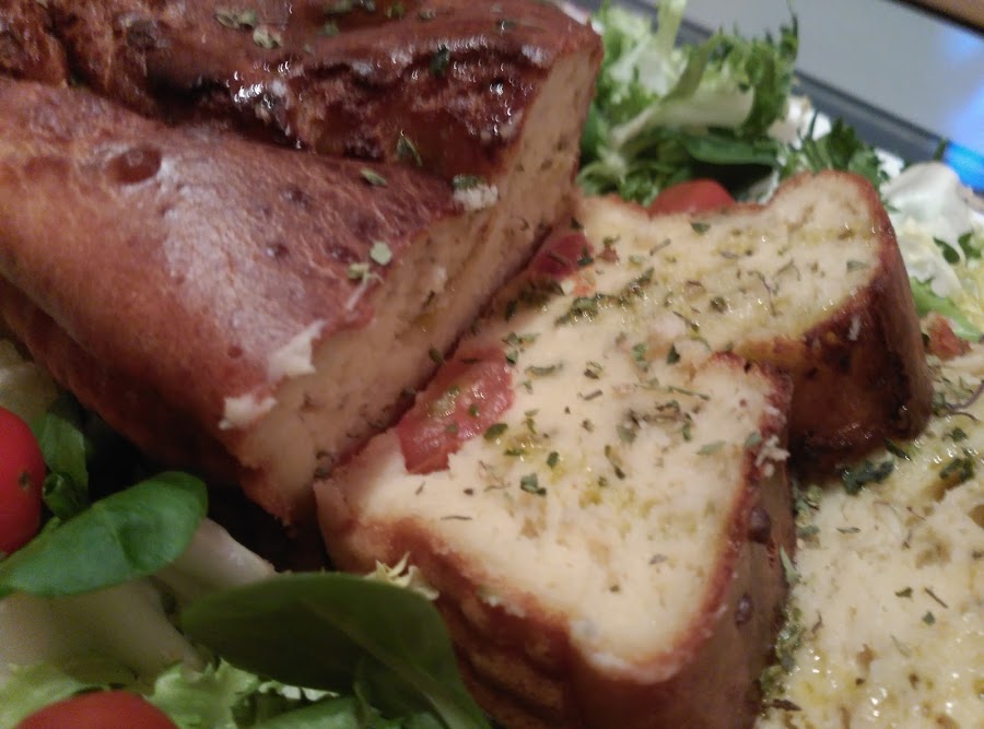 Desmoldar en una bandeja, cortar en rebanadas, espolvorear un poco de orégano y un poco de aceite de oliva virgen.