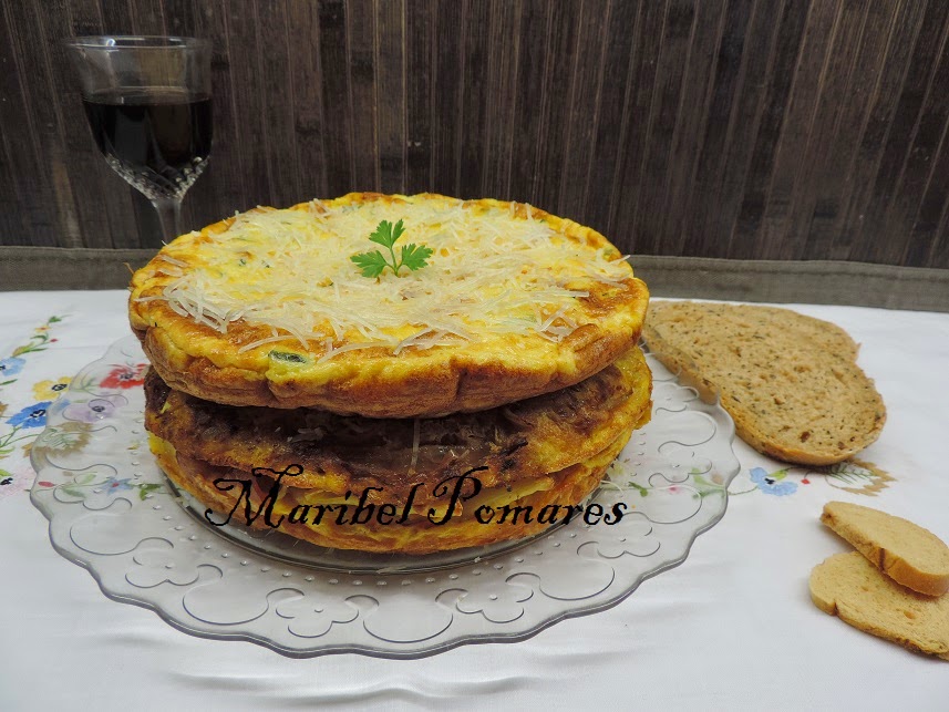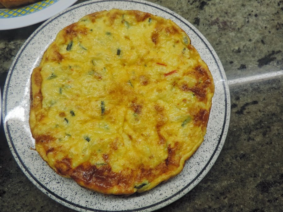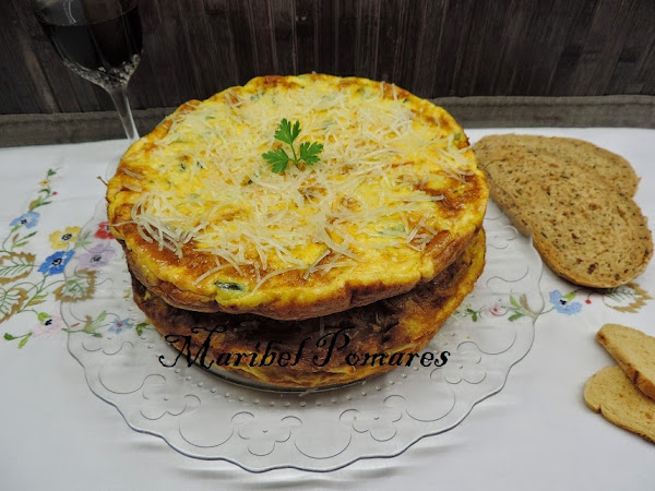 Tortilla de patata, cebolla y calabacin. Pincha aquí para ver como se hace.