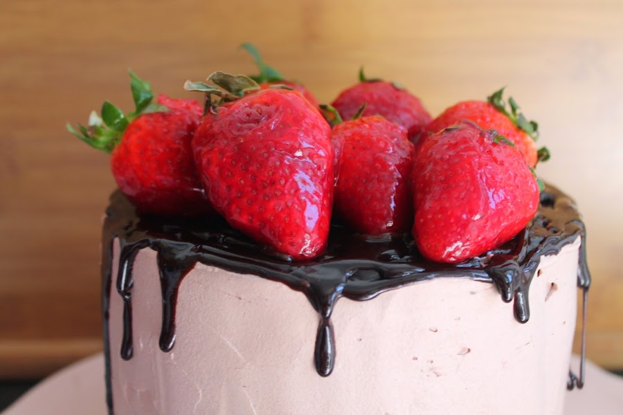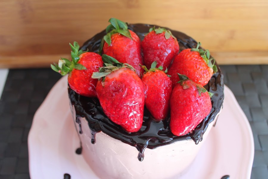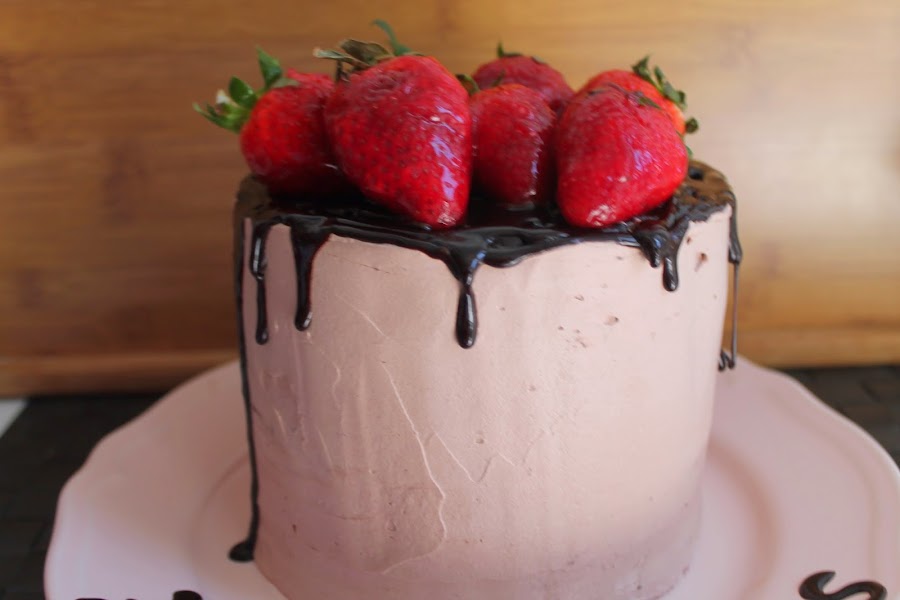 Rellenamos y cubrimos la tarta con esta crema y decoramos con fresas y chocolate al gusto.