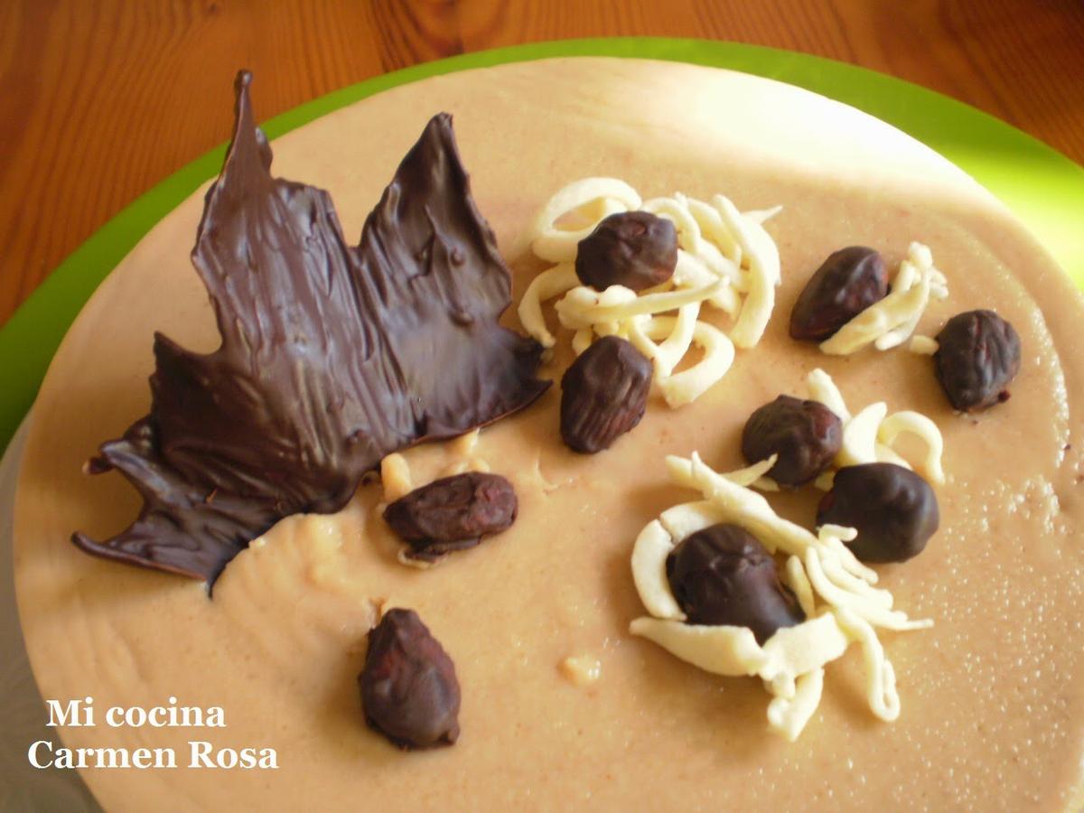 Al dia siguiente, montar la tarta, desmoldando con sumo cuidado, retirando el papel de la base y colocándola en el plato.