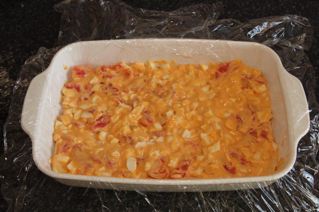 Consejo: Los huevos se pueden cocer con antelación. Es conveniente preparar el pastel de víspera, dejando la decoración para justo antes de servir. Si vemos que nos quedamos escasos con la salsa rosa, haremos a medida que la necesitemos, en mi caso tuve que hacerla dos veces.