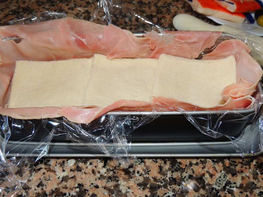 Sobre él se ponen las lonchas de jamón york de modo que también sobresalgan un poco.