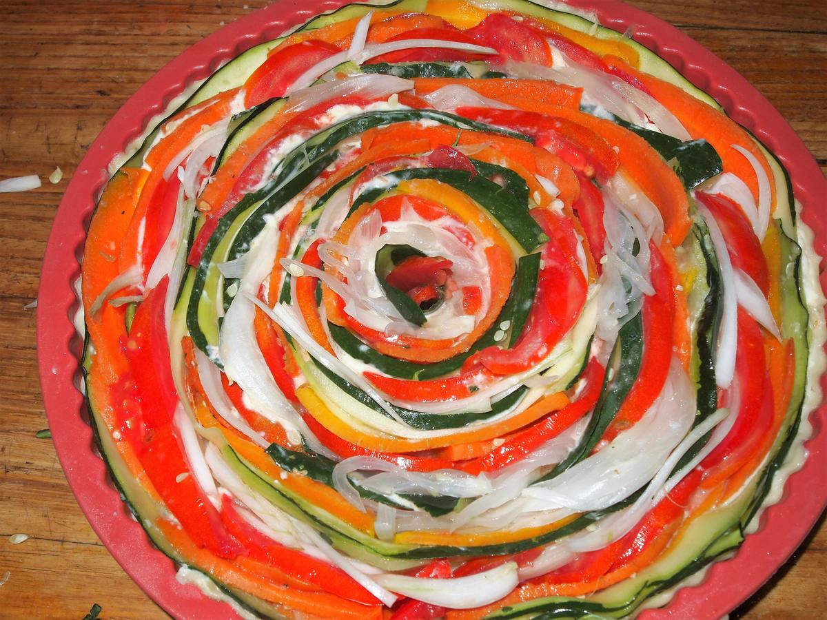 Lo más complicado de hacer, es cortar las verduras, si uno no tiene una mandolina. Pero con una buena mandolina no hay más que ponerse a cortar finas tiras y en un pis pas tenemos el mejor pastel de verduras en espiral del mundo. Y si no tenemos mandolina, con un pelador de verduras cuchillo afilado y mucho cuidado lo disfrutaremos también.