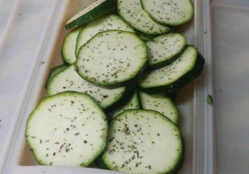 Lavar y cortar el calabacín en lonchas finas. No hace falta quitarle la piel.