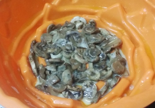 Lavar y filetear los champiñones. Ponerlos en un bol apto para microondas. Cocer 7 minutos a máxima potencia (si es necesario programar algún minuto más). Eliminar el agua que ha soltado.