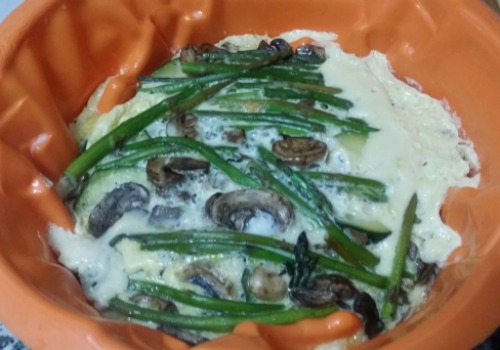 Mi opinión: Una preparación perfecta para una cena ligera. Se puede aligerar un poco más cambiando dos huevos por clara de huevo batida. El sabor queda como una suave tortilla de vegetales.