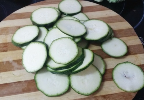 luego las rodajas de calabacín