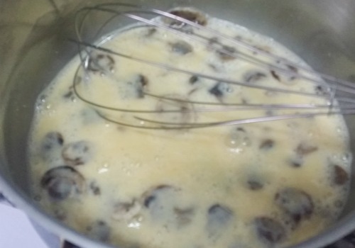 Batir los huevos junto con la leche. Añadir un poco de sal y pimienta.