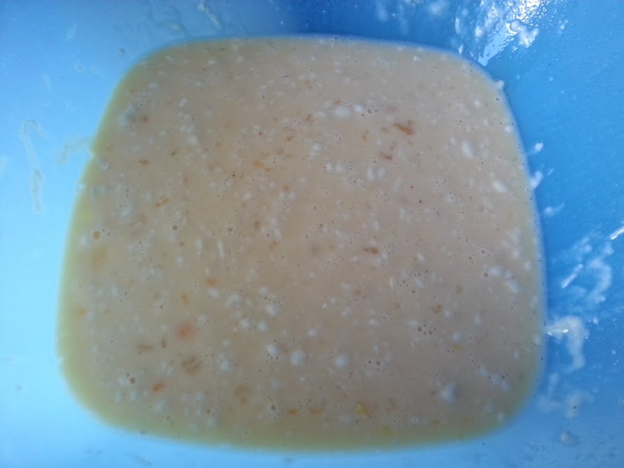 1. - Siguiendo los pasos de la receta anterior, encendemos el horno a 170º y batimos todos los ingredientes.