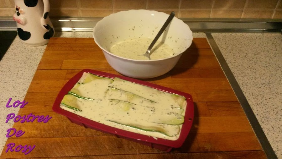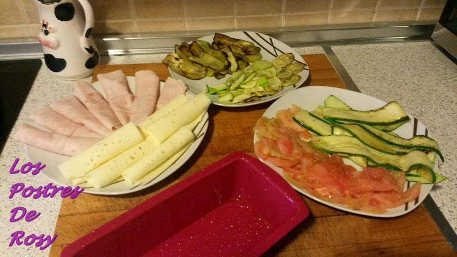 3. Engrasamos un molde con unas gotitas de aceite vegetal y disponemos los ingredientes formando capas, al gusto del consumidor.