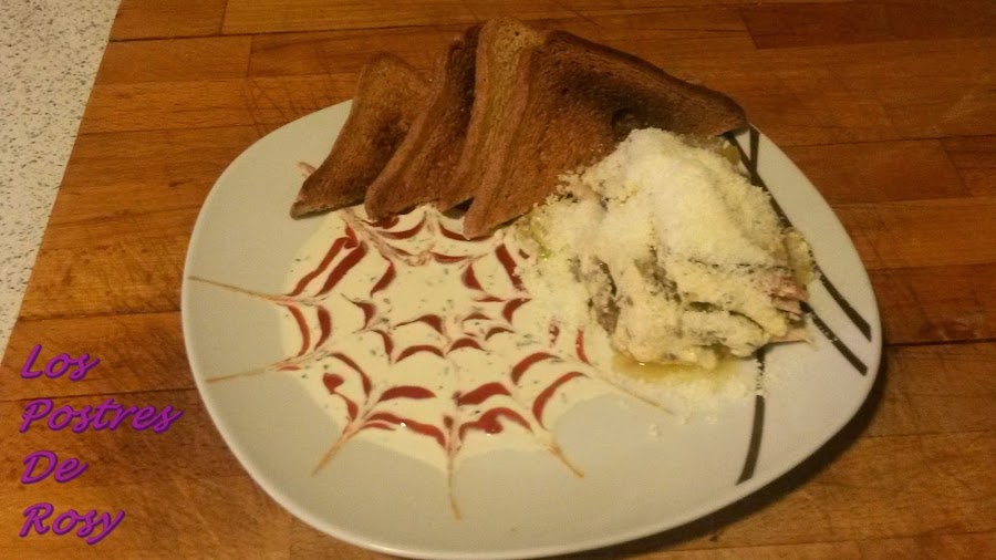 5. Lo llevamos al horno por unos 15-20 minutos a unos 180 grados más o menos (digo, digo y repito, mi horno es muy flojeras, así que el tiempo y la temperatura son orientativas, vosotr@s vigilad que salga cuajado).