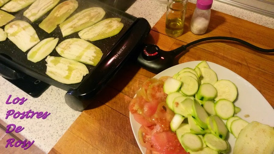 2. Pelamos todas las verduras y las hacemos a la plancha (el tomate no hace falta, pero si lo preferís también puede brasearse).
