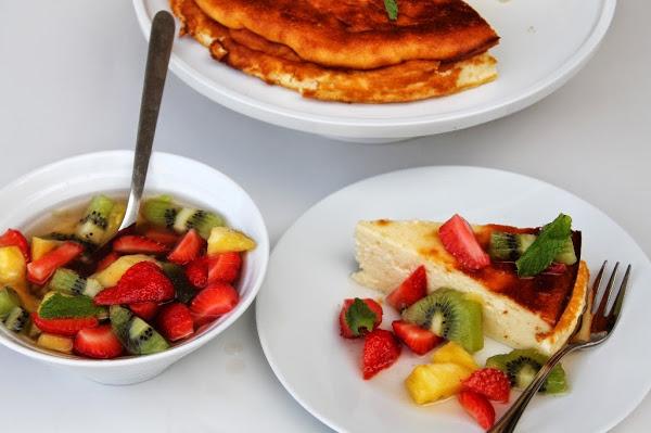 Pues como iba diciendo esta receta es de su libro "El mundo en mi cocina", pero adaptada un poco a mi manera. Él le llama pastel turco de yogur con almíbar de cítricos y yo no le pongo almíbar cítrico pero si le hago una ensalada de frutas variadas con un almíbar normal, es un poco a gusto de cada uno pero lo podéis acompañar también de mermelada o de cualquier fruta que os guste al fin y al cabo es como un cheesecake pero de yogurt. Bon profit!!