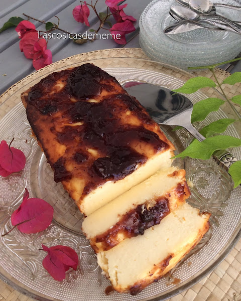 Mermelada de fresa para la cobertura, también podéis hacer un culis, diluyendo la mermelada con una cucharada de agua, calentar un poco y diluir, esperar que enfríe, batirlo y ponerlo sobre el pastel...