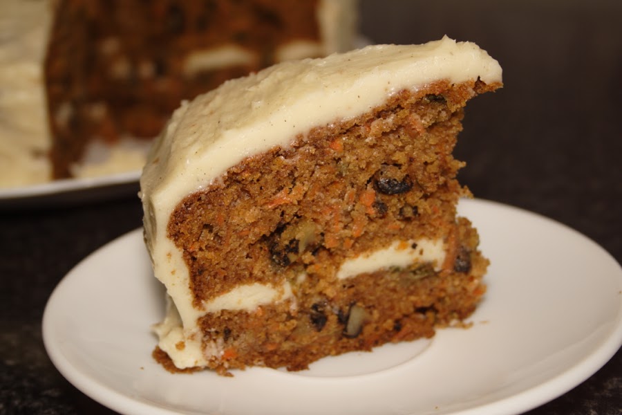 Carrot cake: Pastel de zanahoria, postre típico del Reino Unido, cuya popularidad resurgió probablemente durante la Segunda Guerra Mundial.