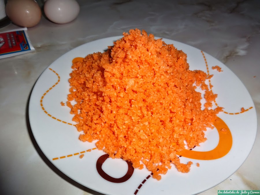 Lo primero que haremos será pelar y picar muy bien la zanahoria. Otra opción seria rallarla, pero nosotros preferimos hacerla mas picadita. Reservamos.