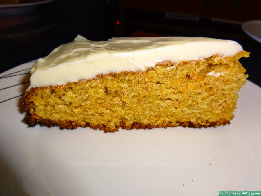 Pero aunque la tarta ya estaba muy rica sola, yo quería hacer algo mas, algo que le diera un punto mas vistoso. Esto no es algo original, ni mucho menos, ya que lo podéis ver en muchísimas recetas, y es que los frosting son muy habituales para acompañar los Carrot Cake. Y siendo algo tan rápido y sencillo, no pude resistirme a prepararlo. Así que ya teníamos la receta completa: un pastel de zanahorias acompañado con una cobertura de frosting de queso. ¡Que mas podíamos pedir!