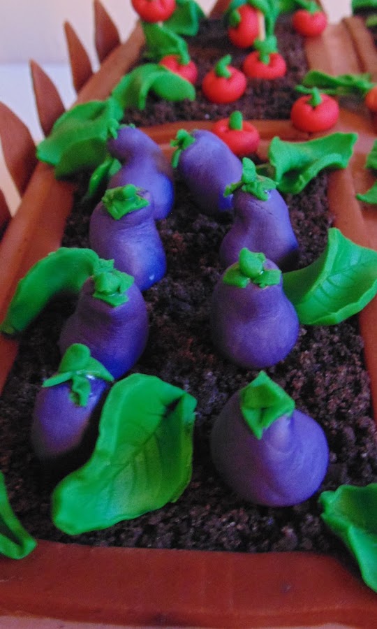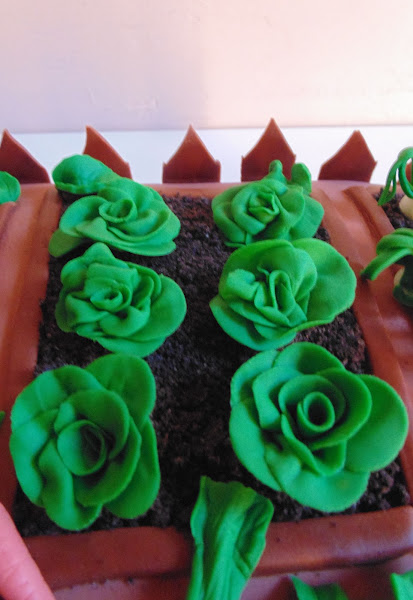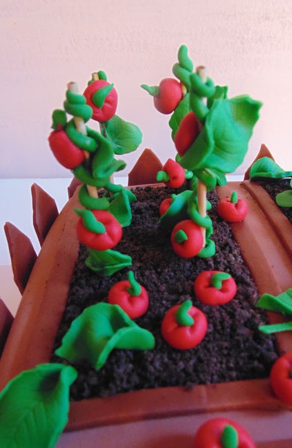 Era un pastel sabor limón: el bizcocho mojado con limoncello y relleno de una crema de mantequilla aromatizada con pasta concentrada de limón. La tierra está hecha con galletas Oreo machacadas y la valla que rodea el pastel también está hecha con antelación para que se mantenga bien recta. Dan ganas de ponerse a plantar!!!