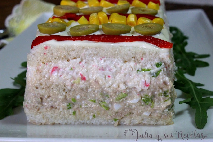 Éste que os propongo hoy, un pastel frío de atún y surimi, está lleno de color y de sabor y perfecto para comer estas días calurosos en los que solo apetecen cosas fresquitas.
