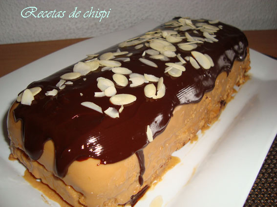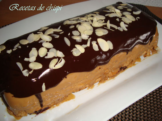 Cuando esté cuajado desmoldar y poner por encima el chocolate que hemos derretido en el micro con la nata (crema de leche) y la almendra por encima, volver a meter en la nevera.