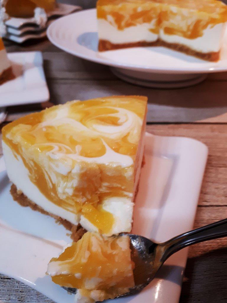 Os presento una tarta facilísima, con poquitos ingredientes, fresquita y rica no, riquísima!! Un postre ideal para combatir las altas temperaturas del verano… Se trata de una tarta fría de queso y mango, donde no necesitaréis horno ni batidora para prepararla. Ya veréis que sencilla resulta, como luce en la mesa y lo espectacularmente rica que es al paladar…
