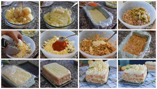 Sobre el relleno ponemos otra capa de puré, otra de relleno y terminamos con el puré.