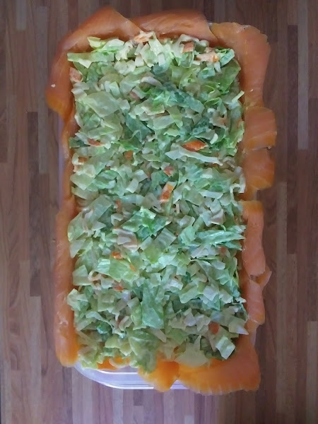 Este pastel ha sido todo un éxito entre mis invitados. La combinación del salmón ahumado con el aguacate, es siempre una apuesta segura y junto con el resto de ingredientes, hace de este pastel un bocado fresco muy apetecible.