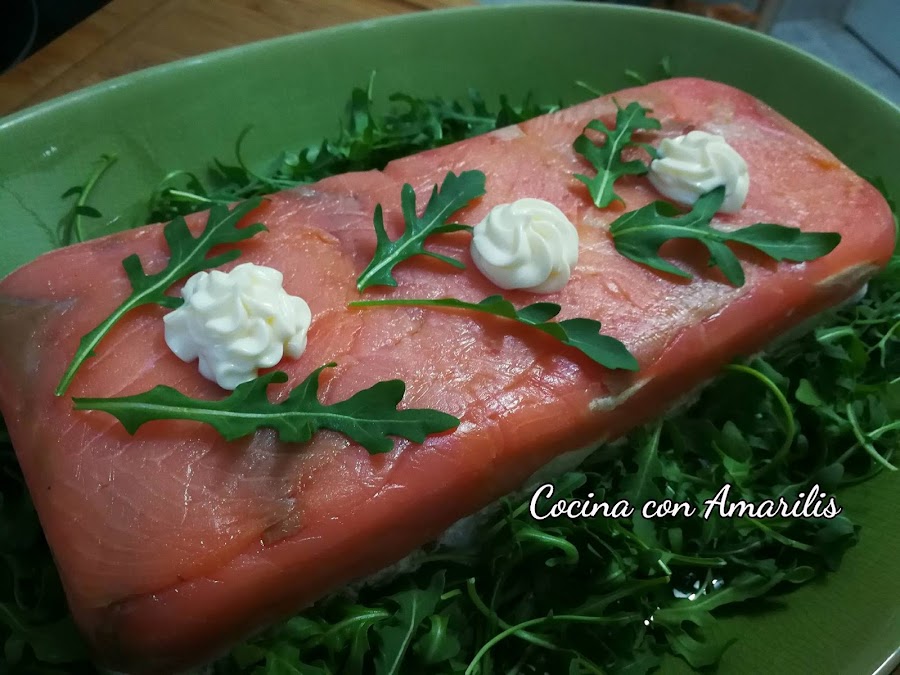 Este pastel de salmón preparado con dos rellenos diferentes, os gustara mucho, la combinación de sabores de salsa rosa y mousse de queso con nueces le da un toque especial.