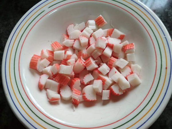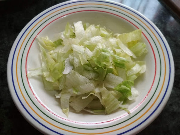 Para prepararlo lo primero es poner los huevos a cocer. Después pico todos los ingredientes (lechuga, surimi y los huevos cocidos y pelados), desmigo el atún, parto el tomate a rodajas finitas y cuando lo tengo todo listo lo monto.