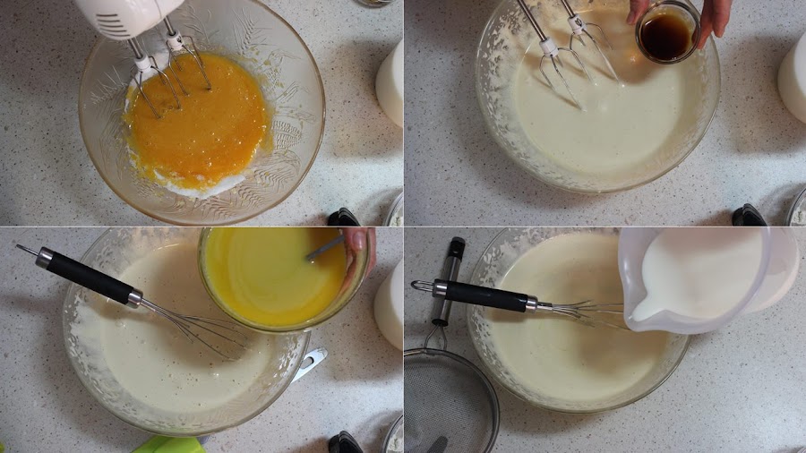 Montamos las yemas con el azúcar y la vainilla hasta que blanqueen.