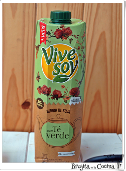 Normalmente se hace con leche, yop en este caso la he sustituido por la nueva vivesoy con té verde, porque le da otro toque y la he conocido gracias a la última caja Disfrutabox. Es una alternativa a la leche de siempre, estas son conocidas como bebidas saludables y es una buena fuente de calcio y vitamia D.