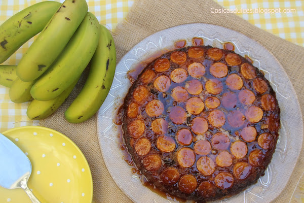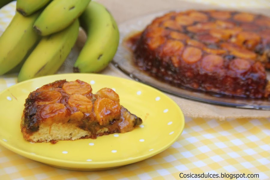 Desmoldamos aún caliente para evitar que el caramelo se solidifique y listo. yo lo corte demasiado caliente y tanto el chocolate como el plátano interior estaban aún muy líquidos, por esa razón la foto del corte no me quedó demasiado bien.