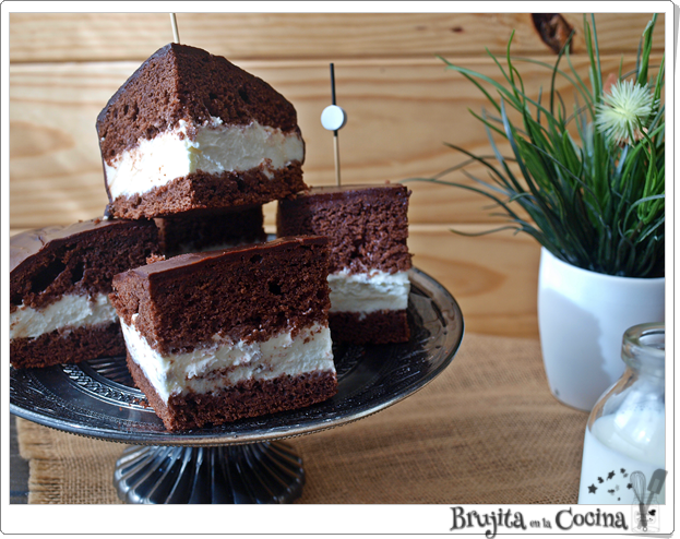 Os traigo los pastelitos tipo Kinder Delice, bizcocho de chocolate y crema de nata (crema de leche), están tan ricoosss y hechos en casa se controla el azúcar, y el tamaño, ya que el corte es cosa nuestra.