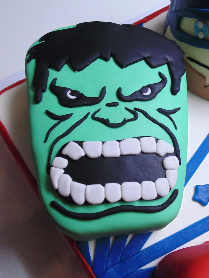 Comienzo por pedir perdón por lo malas que son las fotos... pero es que he tenido algunos problemas técnicos... en fín, pese a todo, no quería dejar de enseñaros este pastel de los vengadores.