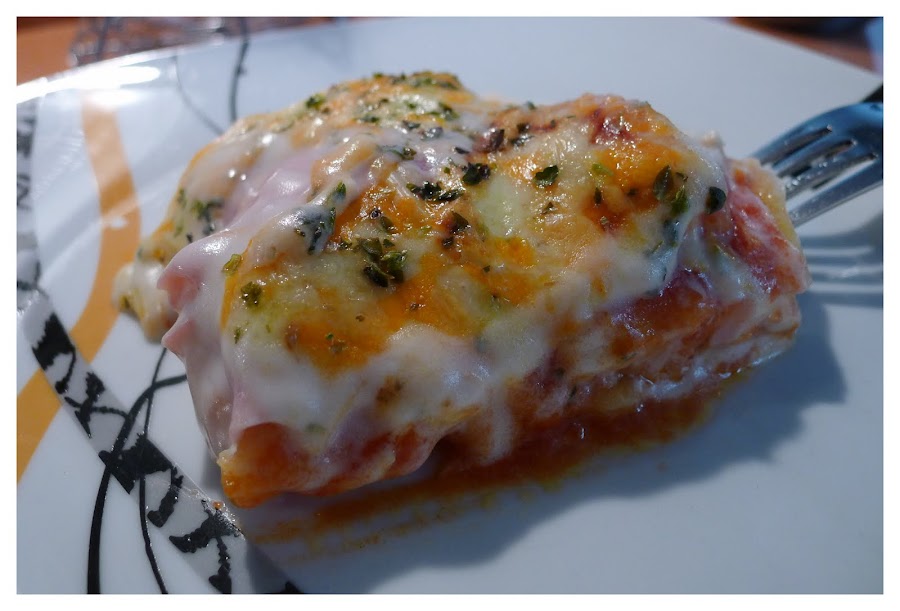 el orden sera este:patatas,tomate,queso,jamon.haremos una segunda capa igual que la primera y por ultimo echamos la bechamel ,el queso rallado y espolvoreamos con oregano.