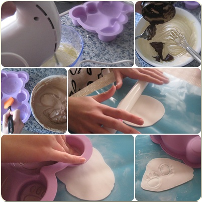 - Las orejas, las manos y los pies son de fondant blanco