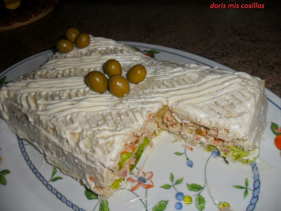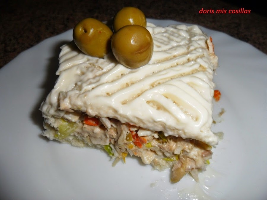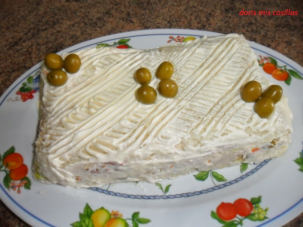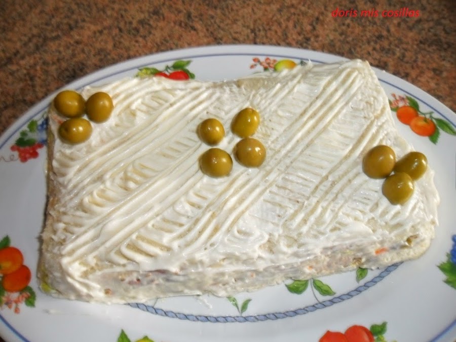 Al día siguiente; ya solo queda cubrirlo de mayonesa o si preferimos salsa rosa y adornar al gusto.