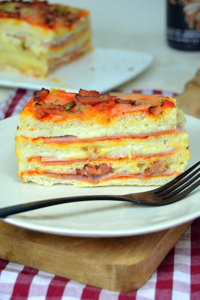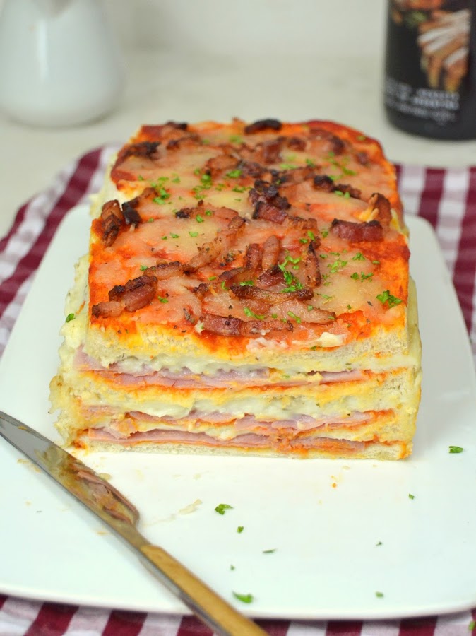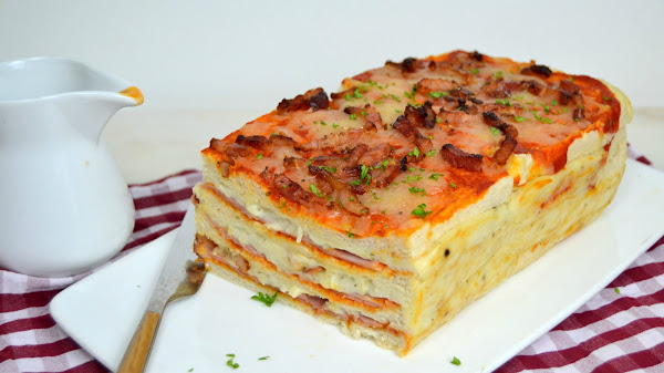 Así que hemos aprovechado para darnos un descanso de las recetas de Navidad y os traemos un pastel pizza con pan de molde, al estilo croque cake buenisimo