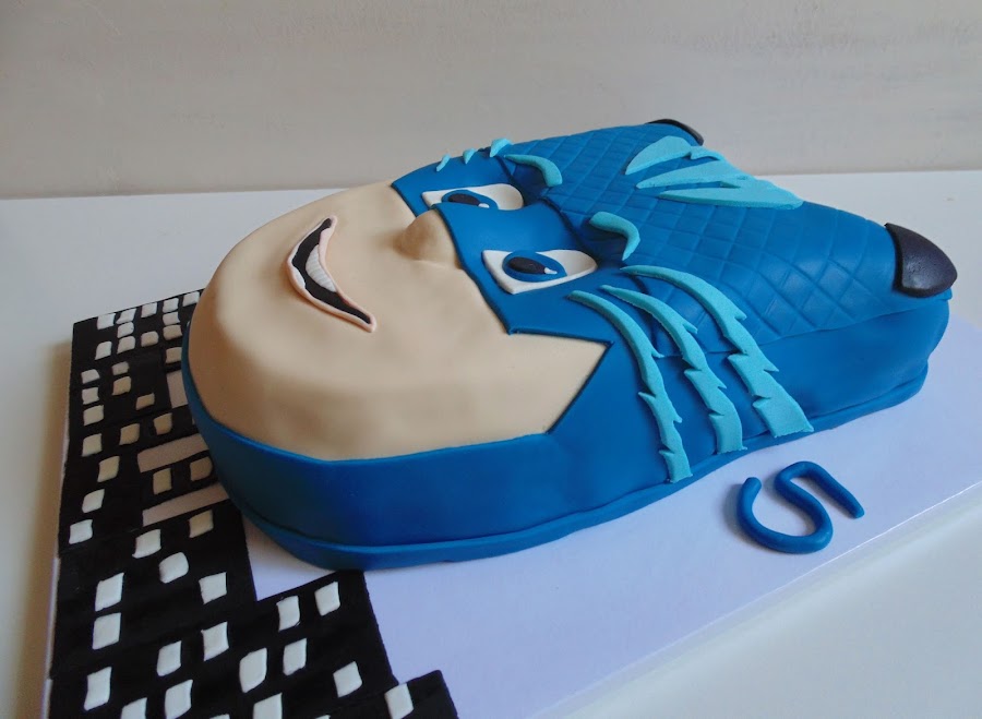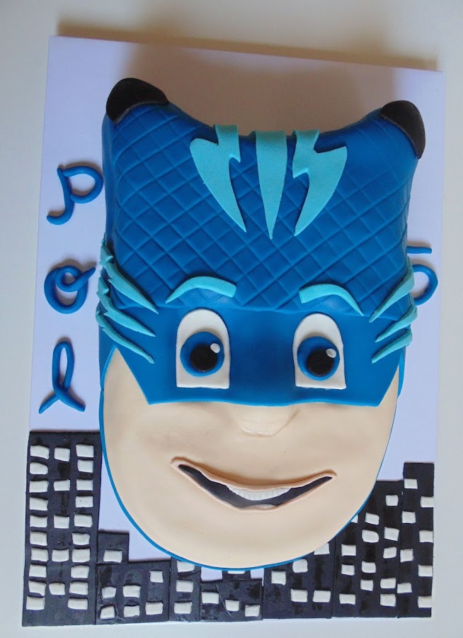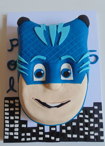 Hoy os traigo el pastel con que Pol celebra su quinto cumpleaños. Es uno de los personajes de PJ Mask.