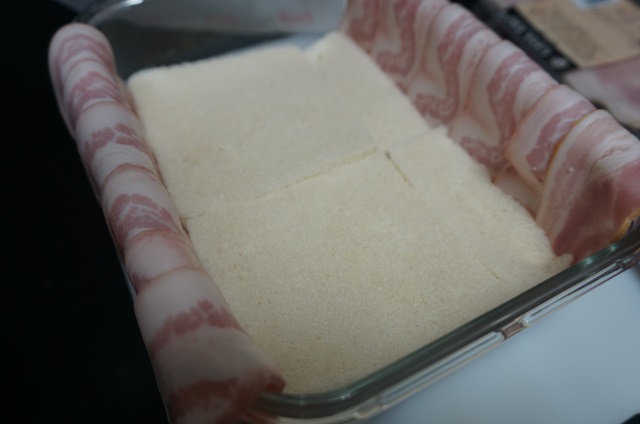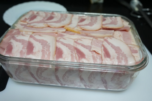 Cerramos el pastel con las tiras de bacon de los lados.