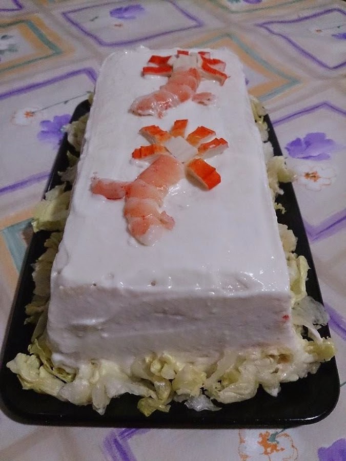 Picar todos los ingredientes de la primera capa muy finito y mezclar bien junto con la lactonesa.
