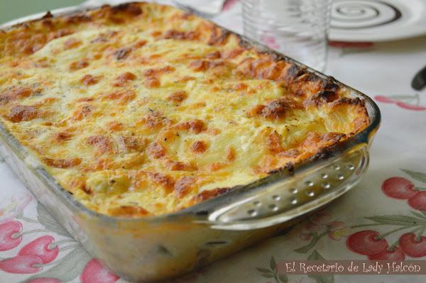 Mételo en el horno 30 minutos aproximadamente o hasta que el queso esté dorado y la masa bien cuajada. Si quieres darle un poco más de color, pasado este tiempo puedes poner un poco el grill.