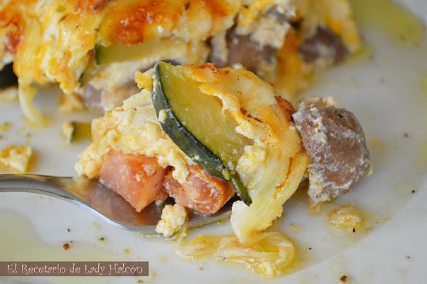 Además, creíamos que iba a ser más pesada por el tema de la chistorra y el bacon, pero fue todo lo contrario, el sabor es muy suave con la mezcla de las otras verduras y con tanto queso ¡es que entra sola!