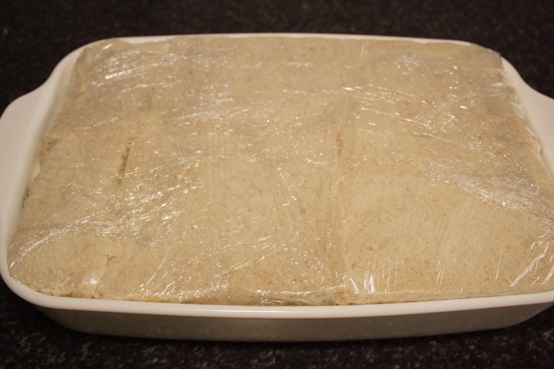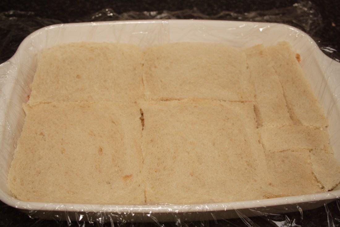 Cubrimos con Bimbo, untamos de nuevo con mayonesa. Seguimos compactando la capa.