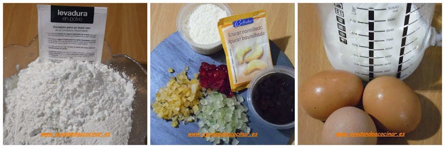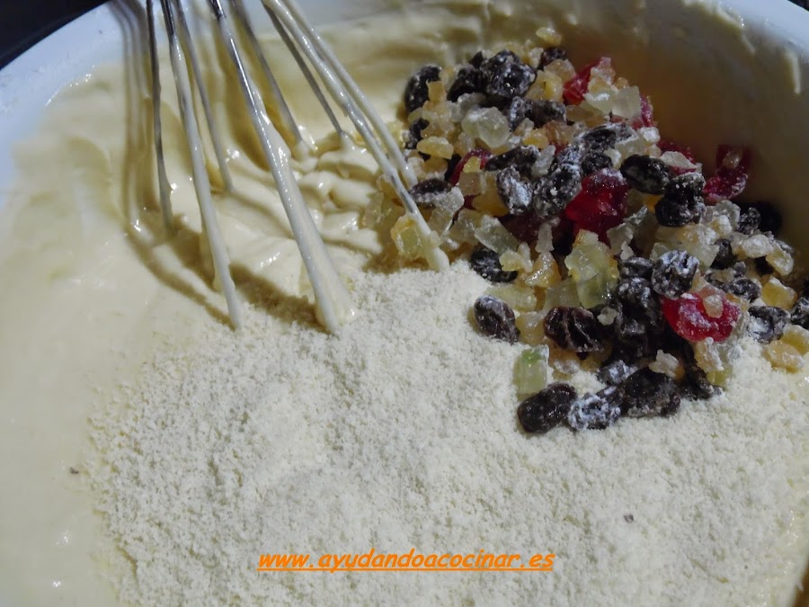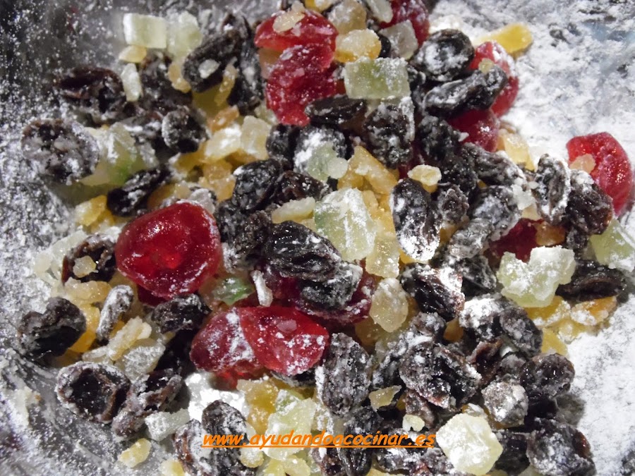 - 1 Cucharada de Harina para rebozar las pasas y fruta confitada
