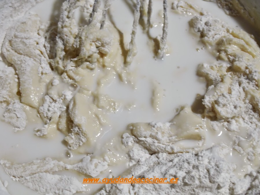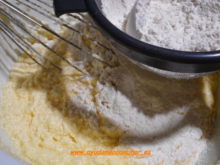 Añadir la mezcla de harinas con la levadura poco a poco, tamizada,