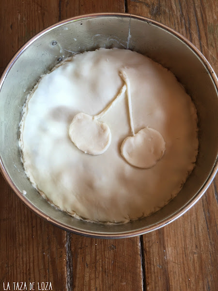 Se coloca por encima del pastel la masa estirada y fina para taparla.