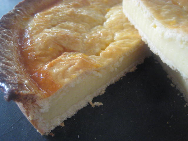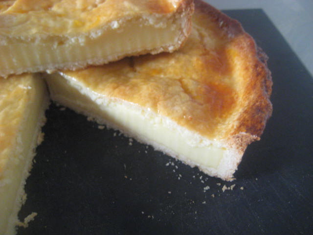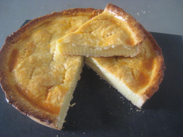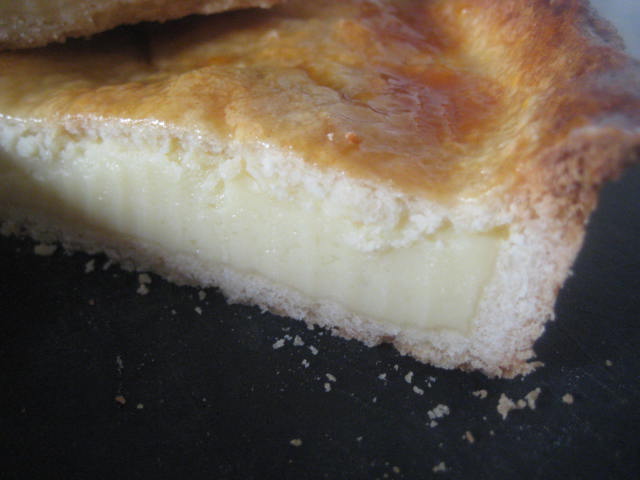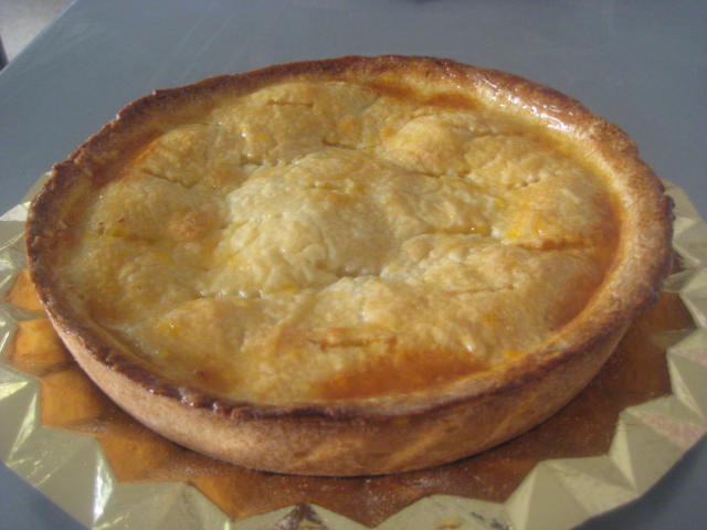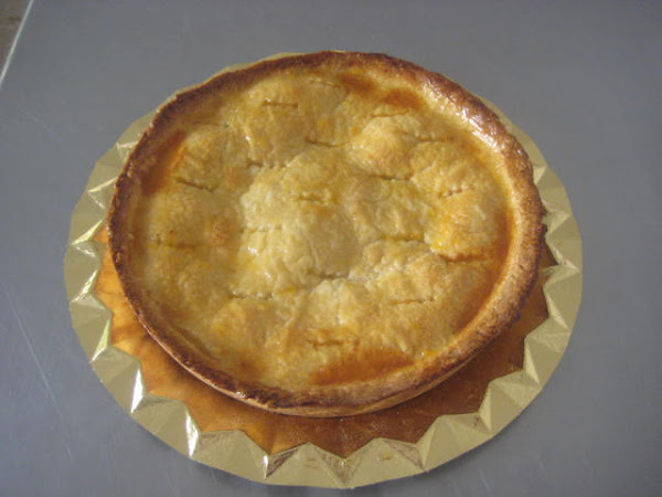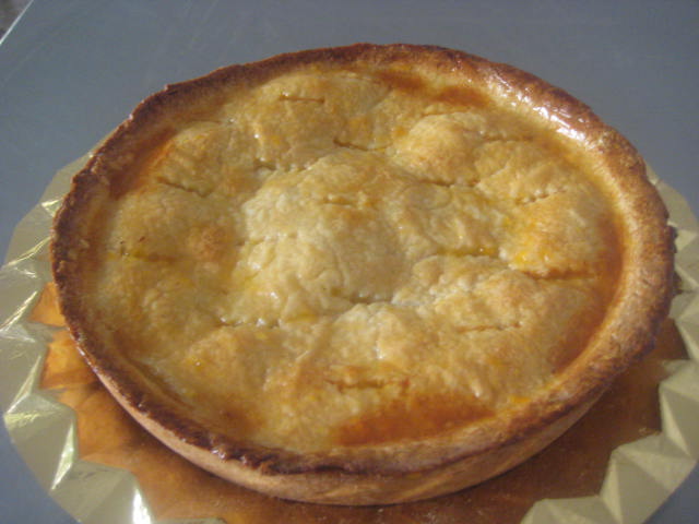 Montaje del pastel: Cuando la crema ya esté fría, sacar el molde del congelador y colocar la crema sobre la superficie de la. Ya relleno, poner la tapa de masa encima, pegando bien los bordes. Pincelar con huevo batido. Si queremos hacer unas rayas con un tenedor o un cuchillo sobre el pastel o pincharlo un poco y cocer en el horno a 190 ºC entre 40 -45 minutos Una vez dorado, dejar enfriar al menos una hora antes de servir. Se pueden añadir unas cucharadas de mermelada al gusto que pondremos sobre la crema