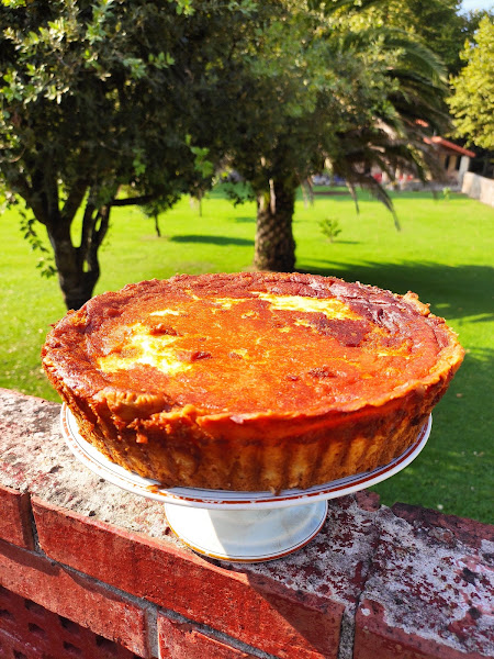Vertemos la mezcla encima del hojaldre y ponemos al horno durante 1 hora aproximadamente. Si vemos que se dora demasiado tapamos con un papel de aluminio.